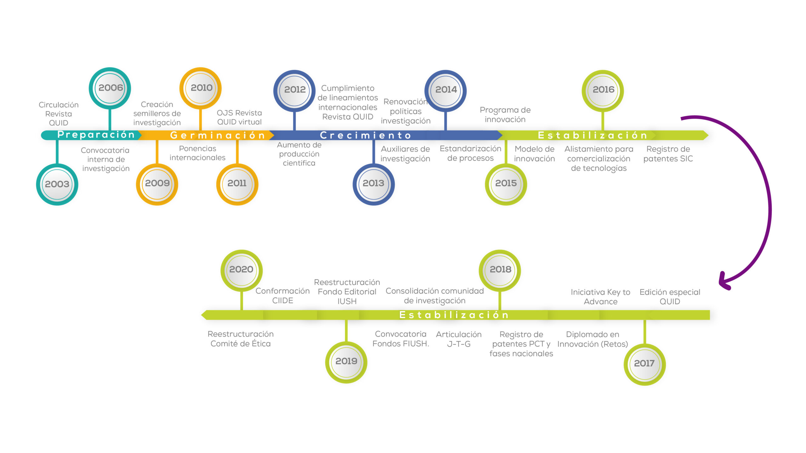 Fomenta dos procesos fundamentales: la creación y la transmisión del conocimiento; soportado en la experiencia nacional e internacional, con capital humano calificado y cualificado, orientado a las metas y objetivos de desarrollo sostenible.